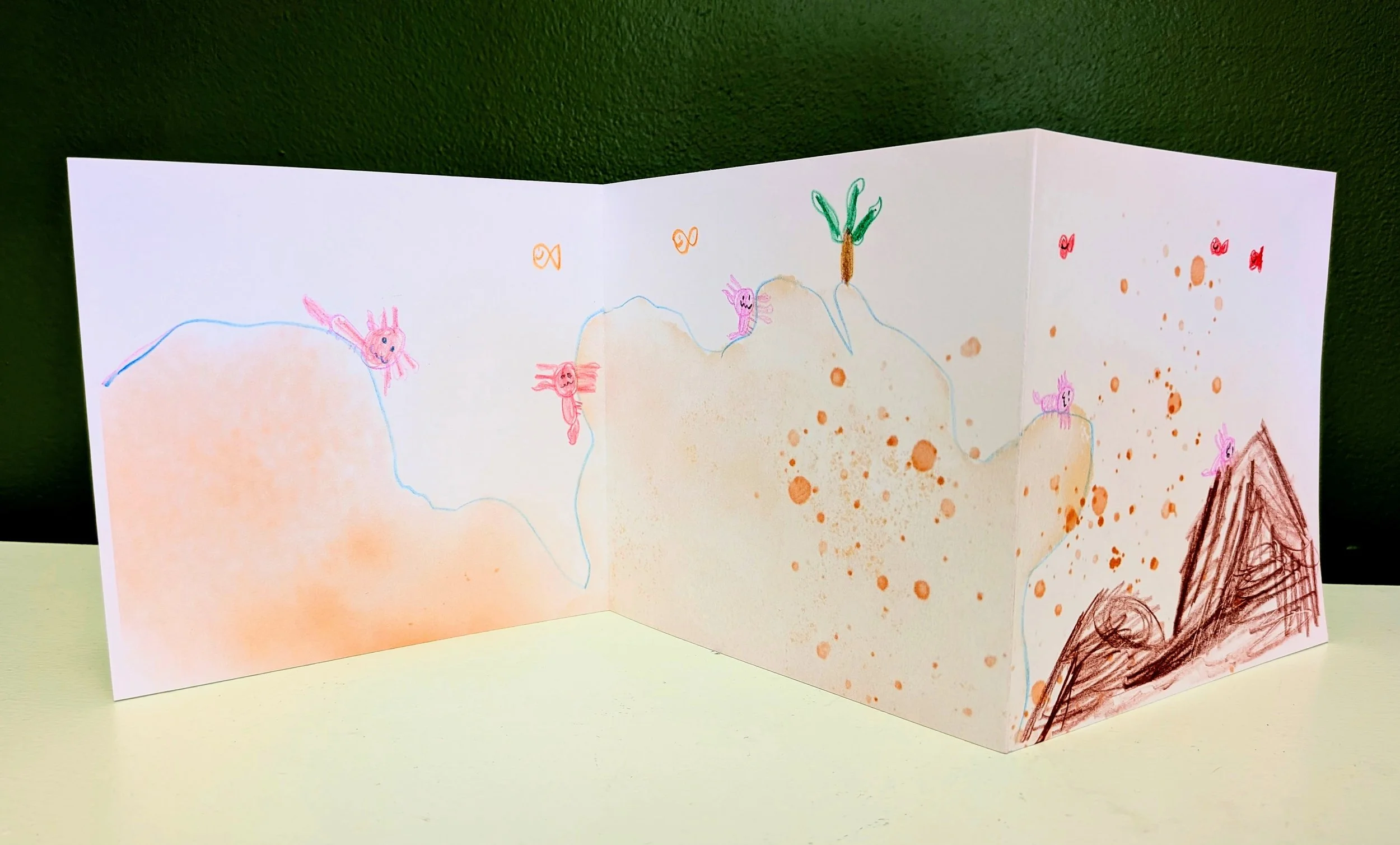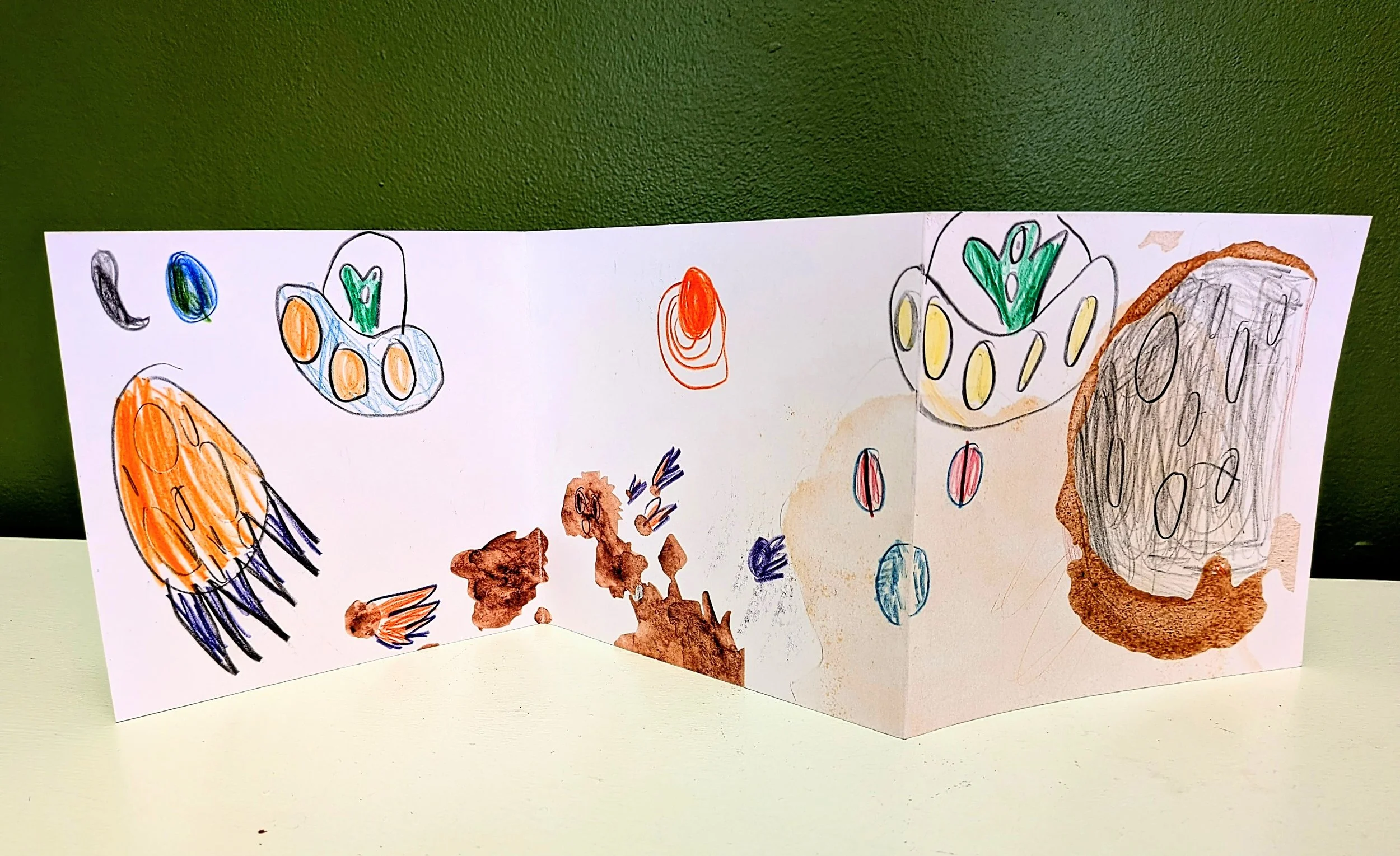 Student drawings inspired by Cheryl Gross’s accordion books.